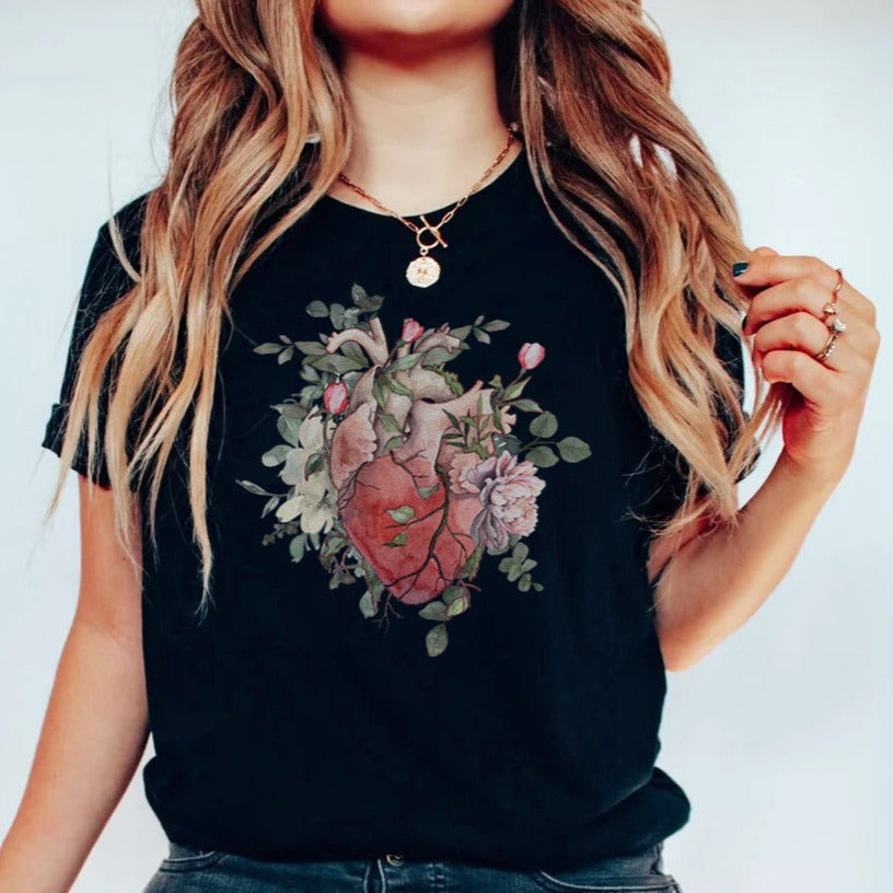 Watercolor Floral Anatomical Heart T-Shirt